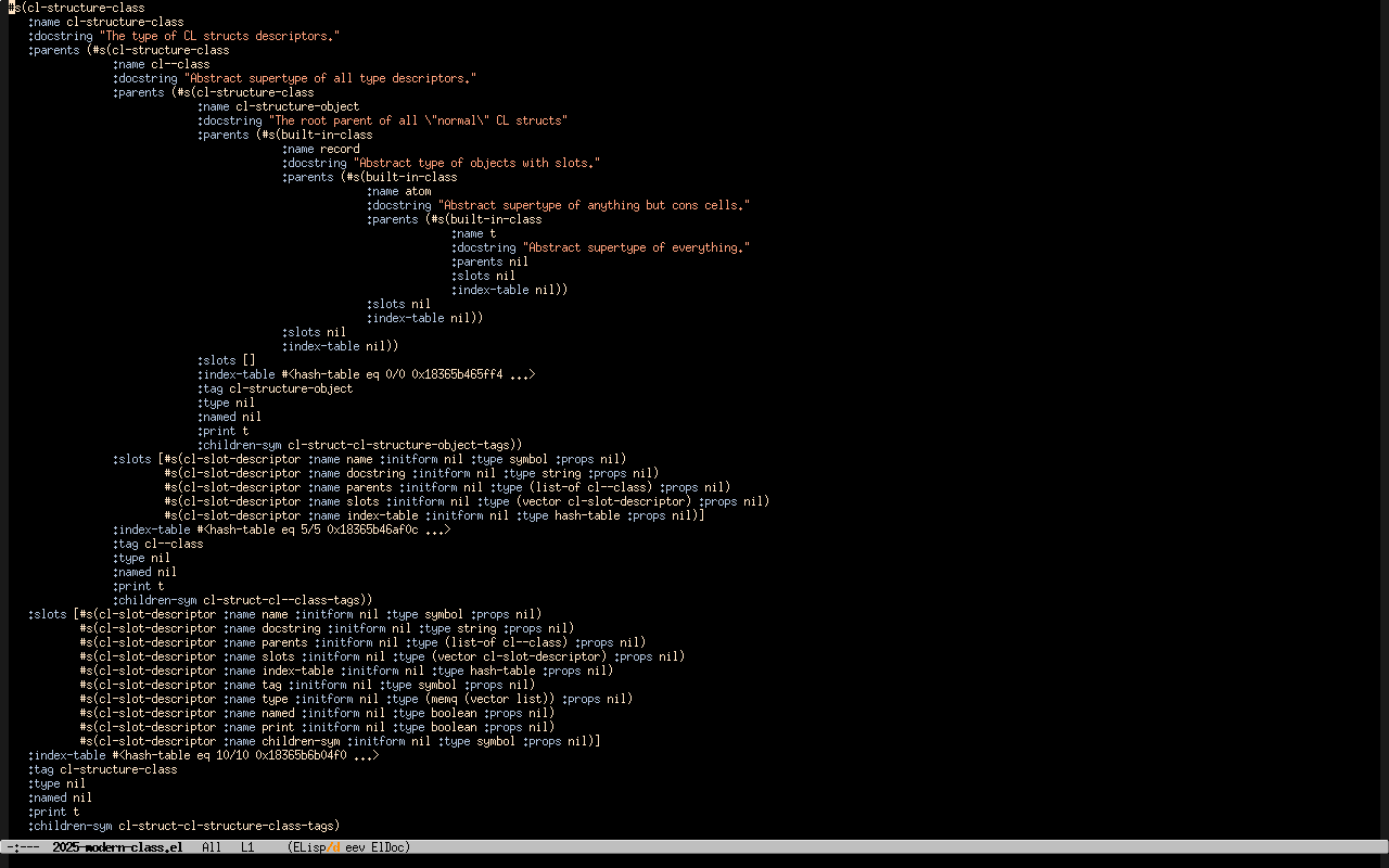 1:30 internal objects, that is the `cl-print'