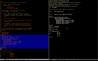 ...and then run the tests and examples in its test blocks. The next sections explain what its tests and examples do. 3. The core: edrxbox.lispThe file edrxbox.lisp has lots of explanations, and it has only a handful of (boring) test blocks that demonstrate low-level things... these ones, starting on the second screenshot: It also has lots of links to displm.lisp and displa.lisp. To make them work in Emacs you need a `code-c-d' like this one: